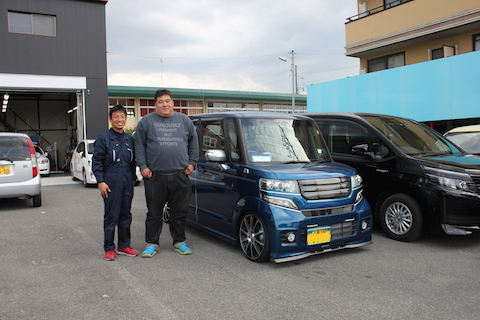 いっぱいドレスアップした、N-BOXのカスタムカーご来店。大事に大事にしている愛車にへこみが?!しかも、誰に当てられたのかもわからないなんて、はがゆいものです。
