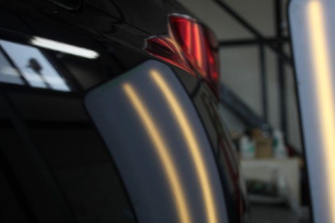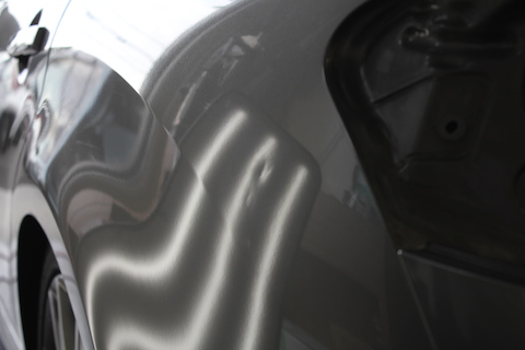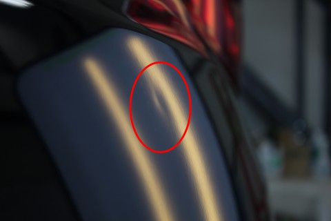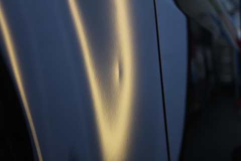 洗車している時に、『あれ?いつの間に』と気がついた、リアクォーターに出来たへこみ。
