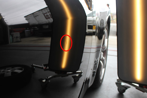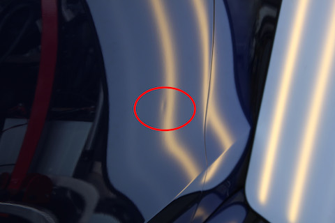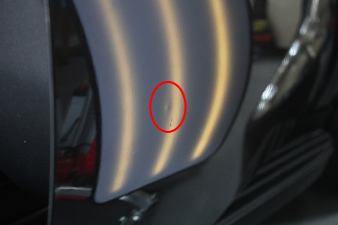 最後に、右のリアフェンダーに大きなへこみ。