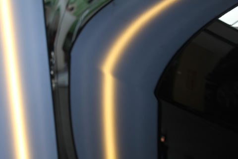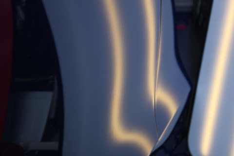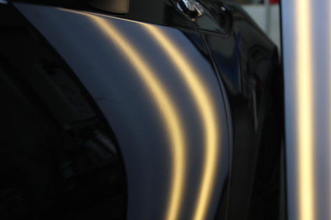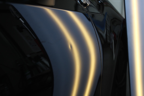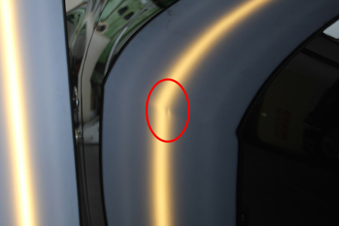 まずは、左ドアのプレスラインに出来たへこみ。