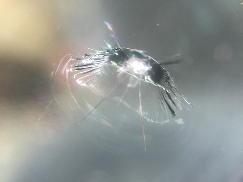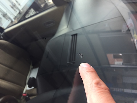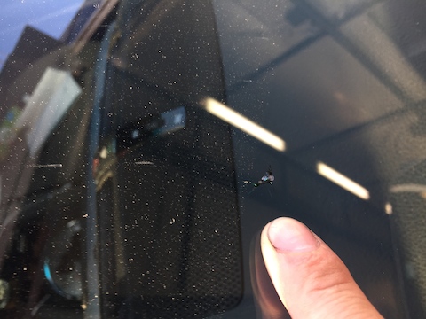 シエンタへ乗り換える前に、飛び石のキズが伸びてフロントガラス交換。シエンタ買って2週間で飛び石被害。