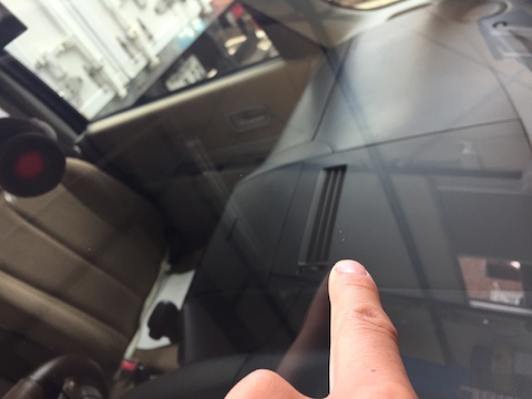フロントガラス真ん中辺りにあった、伸びそうなキズ。