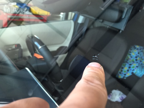 運転席前にある飛び石のキズ。運転中、ドキドキしたと思います!