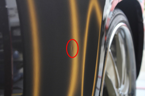 塗装が少しだけ、小さな点キズが付いていますが、へこみに比べれば、ほとんどわかりません。