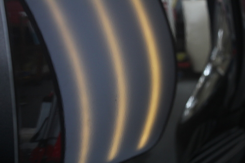 左リアクォーターに出来たへこみ。複数つらなっています。