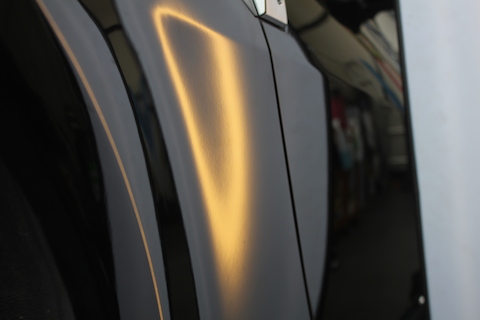 鉄板を押し戻し、塗装の肌をしっかり合わせて、へこみ無くなりました!