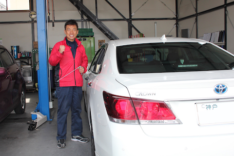 片道で約70kmの兵庫県神戸市より、クラウン アスリートのお客様が、ヘコミ修理でご来店頂きました!
