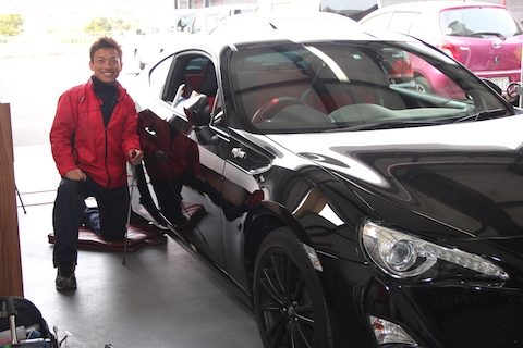大阪市より、サンバーのお客様がご来店。フロントガラス飛び石修理後の仕上がりを見て、