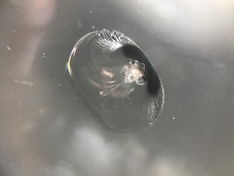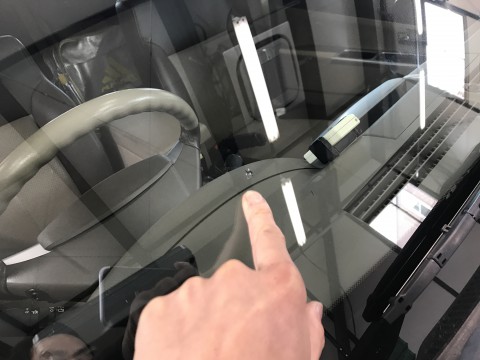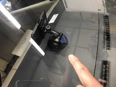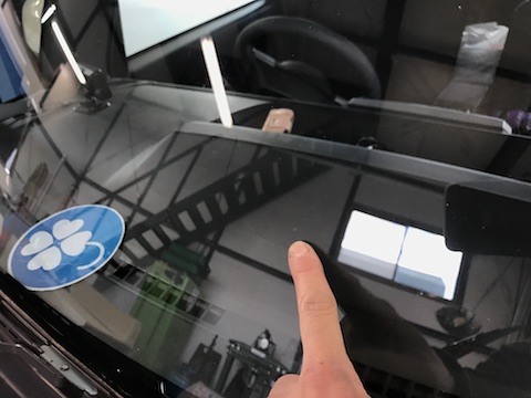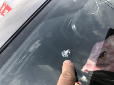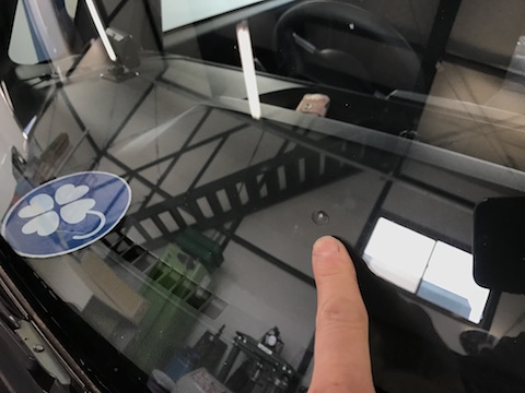 運転席目の前に出来た飛び石の傷。割れそうで心配になります・・・