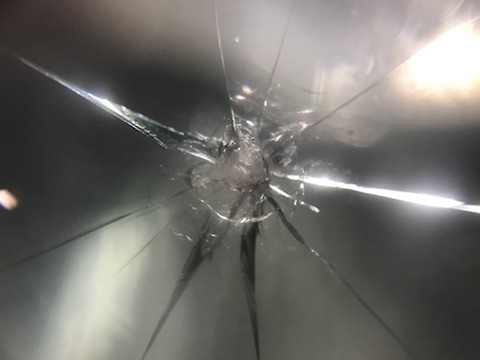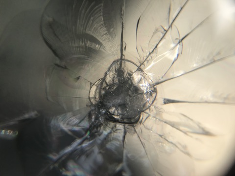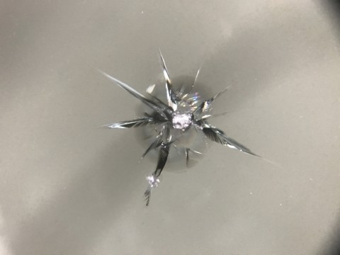 大きくて、中心もガラスがえぐれてしまい、ウインドリペアの修理も難しいですが、