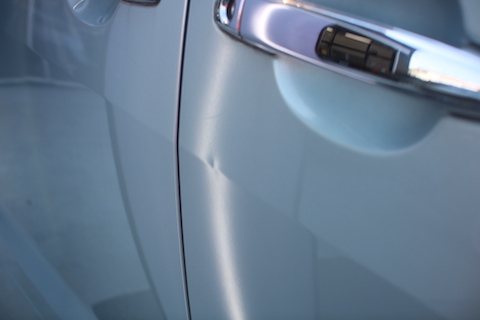 運転席ドアに出来たヘコミ。ドアパンチでやられたのでしょう・・・