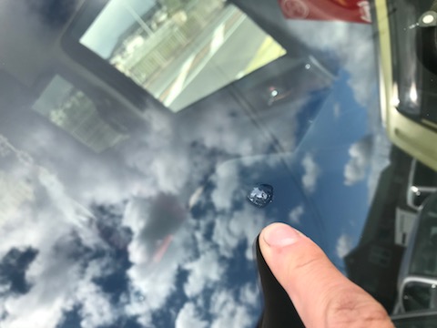 大阪府よりミニクーパーのフロントガラスに飛び石被害。