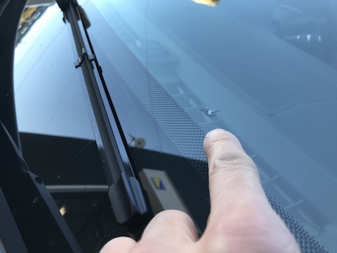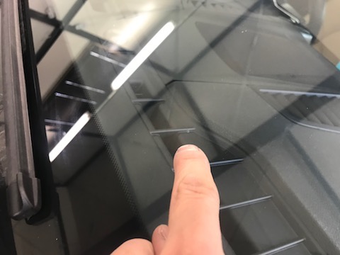 フロントガラス下側にできた傷。この場所も通常ならフロントガラス交換となってしまう場所。イヴォーグのフロントガラス交換は30万円くらいします!
