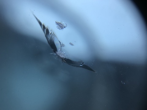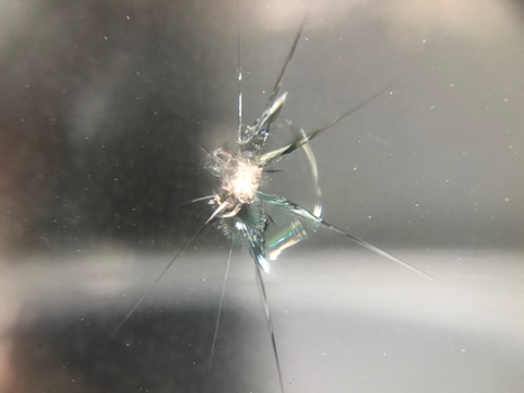 フロントガラスに出来た飛び石の傷、デントスマイルが専門で行うウインドリペアで直接施工させて頂きました。