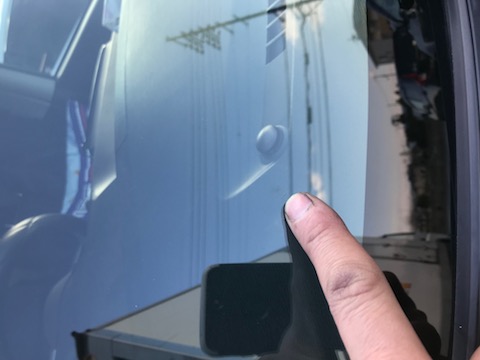 フロントガラス下側に出来た傷。通常ならガラス交換となってしまう場所。