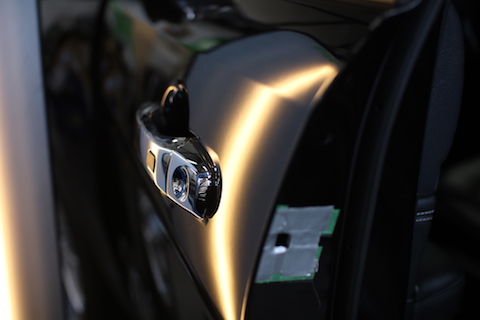 右前ドアに出来たヘコミ。パテ埋めて、塗装してという作業で直すのが通常ですが、