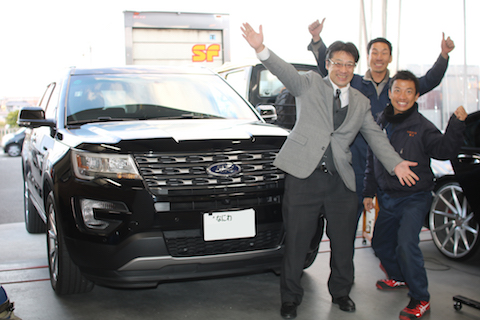大阪府大阪市よりエクスプローラーのお客様、ドアパンチの当て逃げ被害でヘコミが。