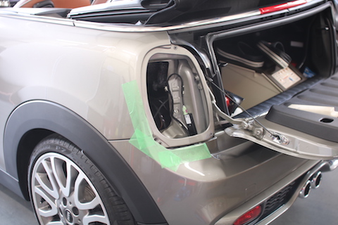 テールランプの穴から、特殊工具を入れて、ヘコミの裏を綺麗に押していけば、