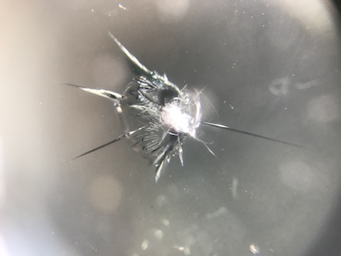 フロントガラスに飛び石が当たって出来た傷、修理で直るんです!