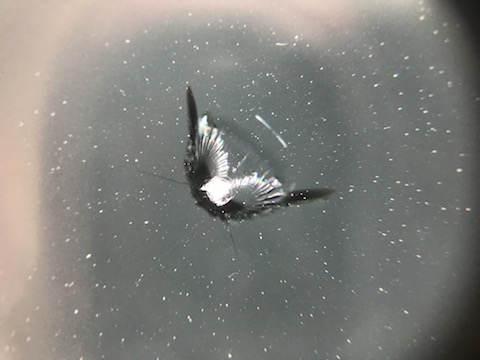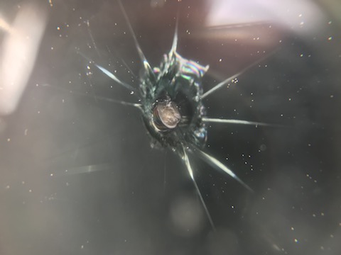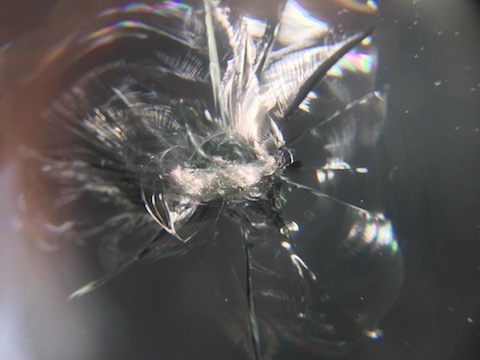 バモスのお客様、フロントガラスに飛び石被害で、2つの傷!