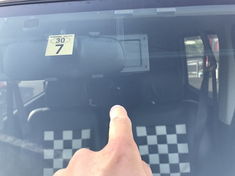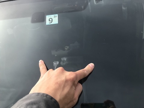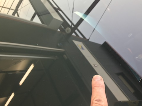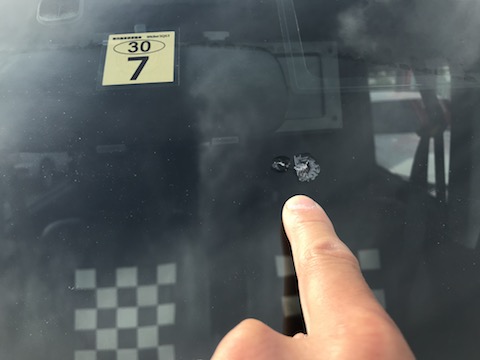 傷はフロントガラス真ん中あたりに飛び石被害。