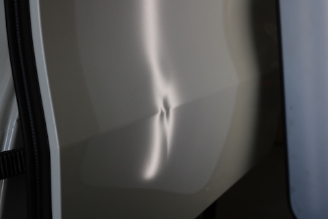 左スライドドアに縦筋の大きなヘコミ!