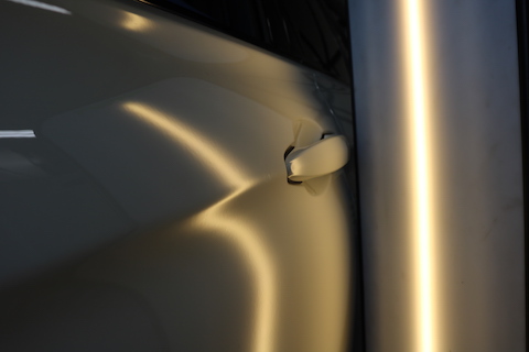 車のプレスラインにヘコミ。輸入車の硬い鉄板も直ります!