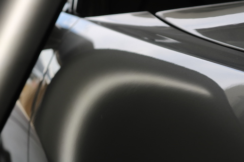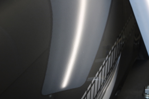 通常なら、ヘコミをパテ埋めして、フェンダーを1面塗装する修理で、