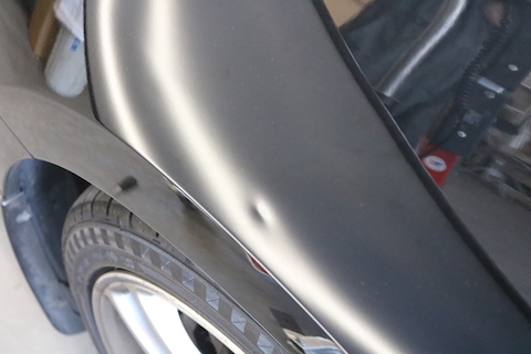S2000のお客様の右前フェンダーに大きなヘコミ。
