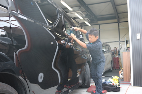 ヘコミを裏から押して元に戻すデントリペアなら、