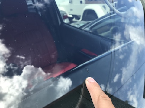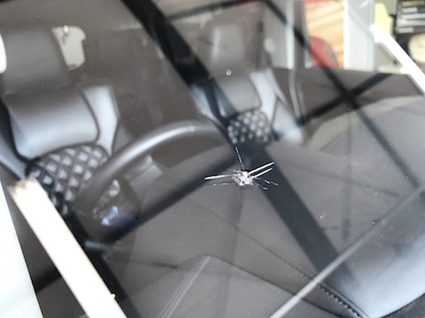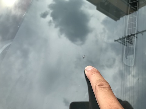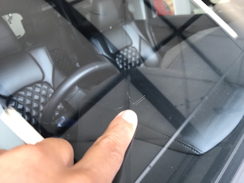フロントガラスに飛び石が当たって、ヒビ割れ!