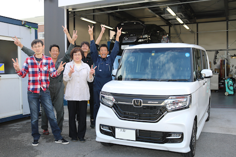 和歌山県よりタントのお客様、ドアガラス交換とフロントガラスの飛び石修理でご来店。