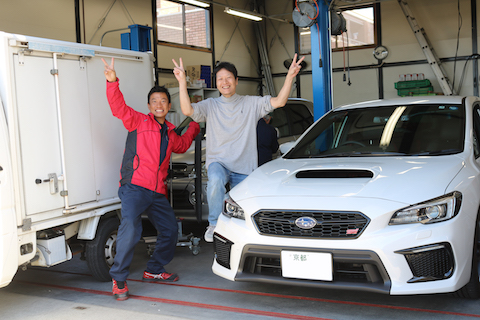 スバル WRX STiのお客様、ヘコミ修理でご来店。