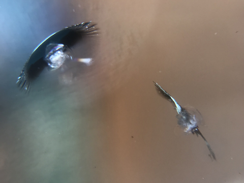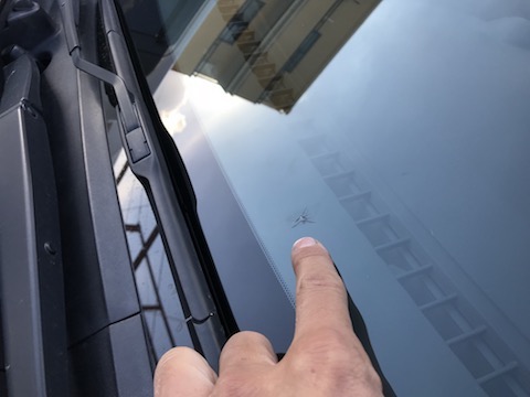 フロントガラスの表面欠けで白く目立つ!修理すれば目立たなくなります。