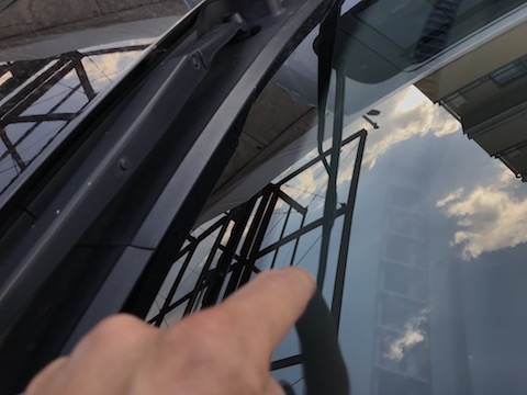 フロントガラスの下側、ウインドリペアで修理出来ない場所もデントスマイルは直します!