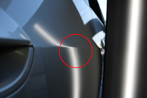 リアクォーター部分のヘコミ、プレスラインが潰れていても、