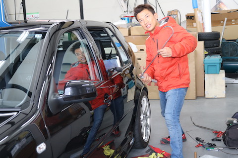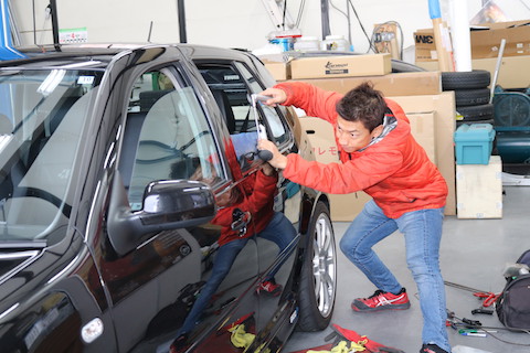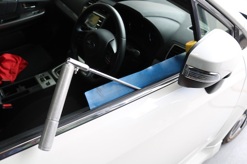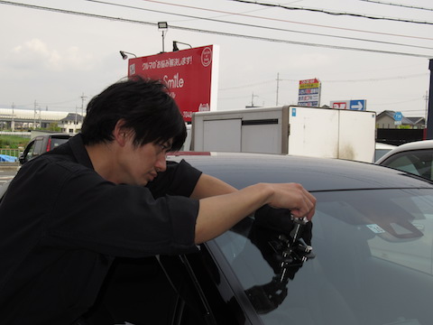 この場合、ガラスの隙間からデントリペアツールをアクセスしてへこみを直していきます。