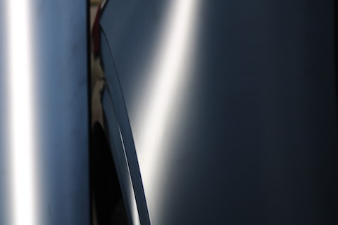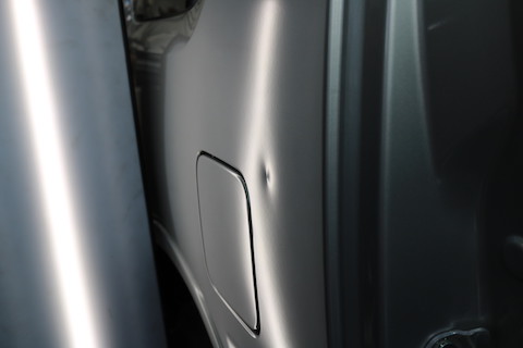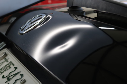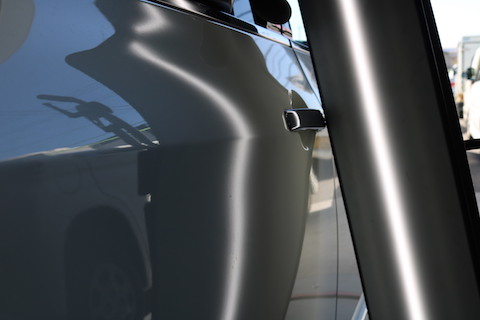 このようなへこみは板金塗装ではなく、「デントリペア」というパテ・塗装しない修理方法で即解決です。