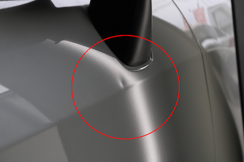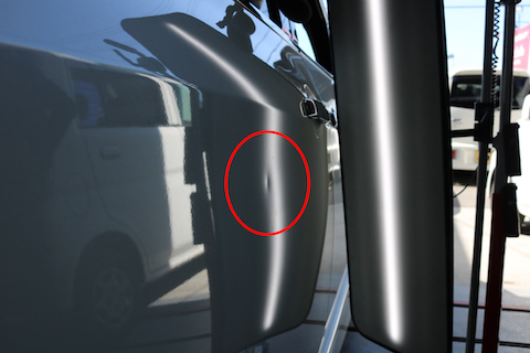 小さいけど目立つへこみで、プレスラインにも少しかかっています。