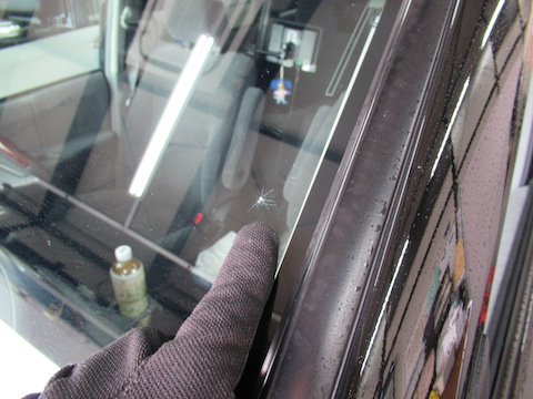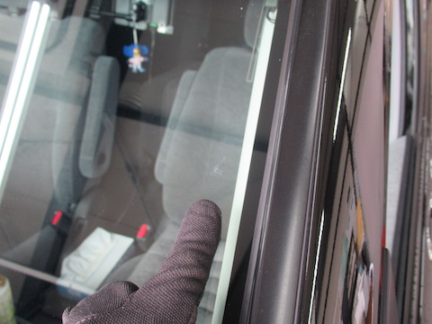 フロントガラス下側に傷があり、いつ伸びるかわからない状態。
