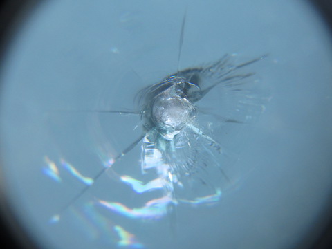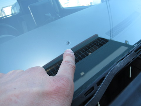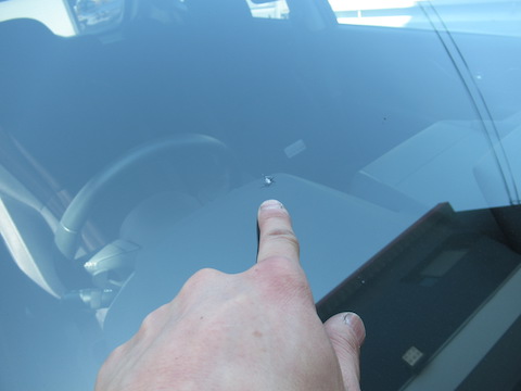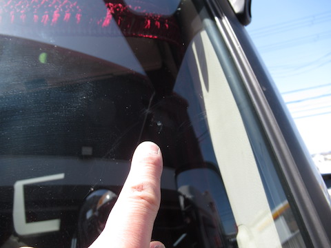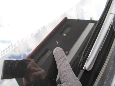 走行中にどこから飛んできたかわからない小石等がフロントガラスに当たり、