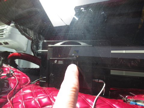 特殊工具を窓ガラスから入れて、ヘコミの裏を押して、