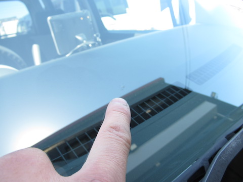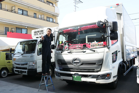 4トントラックでも、フロントガラスの飛び石によるヒビ割れ修理やります!