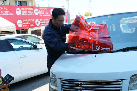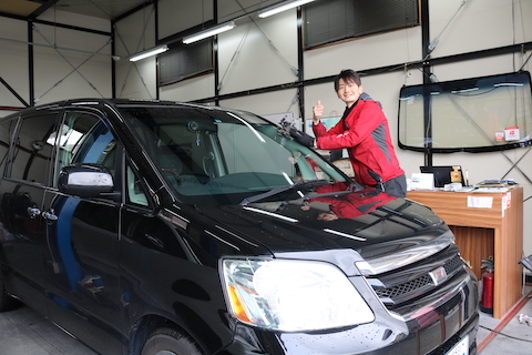 大阪市よりフロントガラスに飛び石で割れてしまったと、ワゴンRのお客様がご来店。