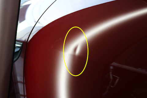 デントスマイルなら、このヘコミを鈑金・塗装せずに直すデントリペアで解決します!