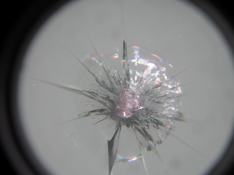 1つ1つ、傷口にガラスの樹脂を注入して傷口を埋める、ウインドリペアで修理していきます。