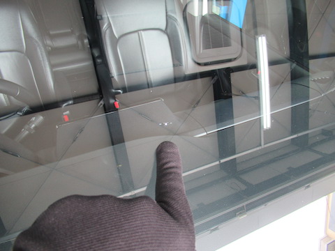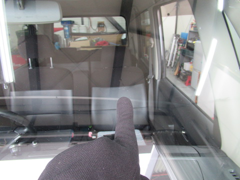 フロントガラス下側で、ガラスの端っこは車のねじれなどで負荷がかかりやすく、