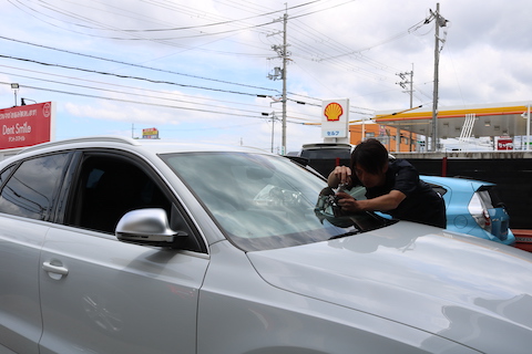 アウディのお客様、フロントガラスが割れてしまったとご来店。