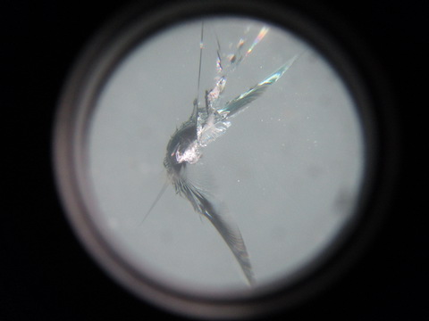 ウインドリペアという手法で、ヒビにガラスの樹脂を流し入れて固める事で、