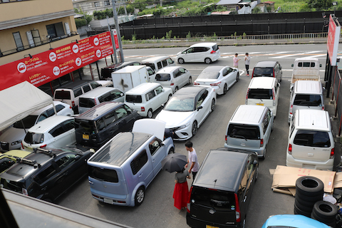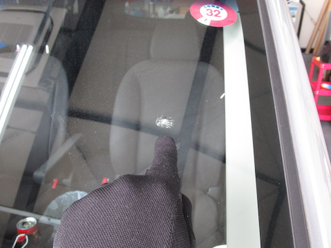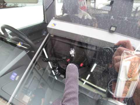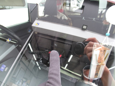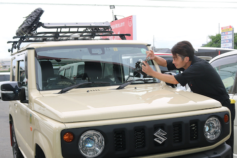 大阪市よりジムニーのお客様、フロントガラスが割れたとご来店。